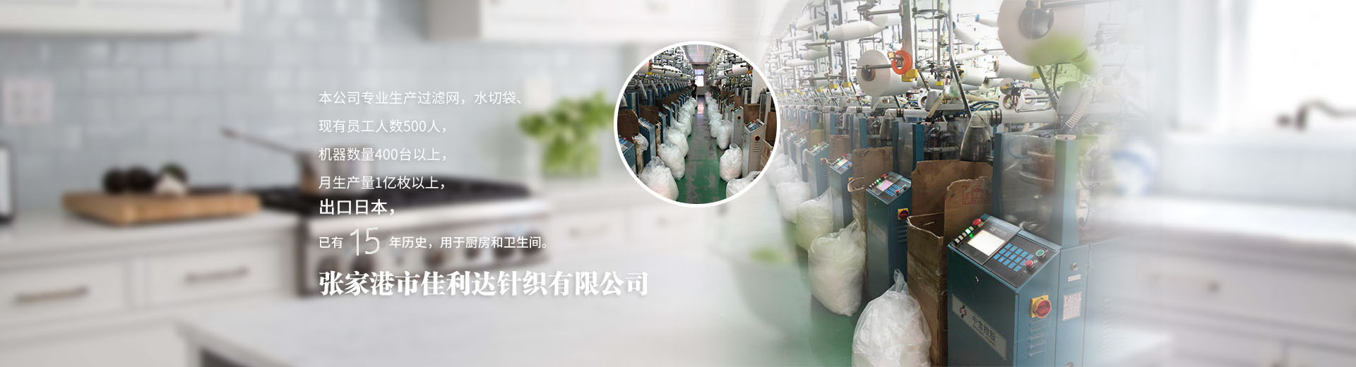 張家港市佳利達(dá)針織有限公司地處田垛里二區(qū),北依南通港,東傍上海港,與蘇錫常地區(qū)接壤,地理位置優(yōu)越,水陸交通便利。現(xiàn)有員工人數(shù)500人,機(jī)器數(shù)量400臺以上,月生產(chǎn)量1億枚以上。公司專業(yè)生產(chǎn)水切網(wǎng)、滌綸網(wǎng)袋、垃圾過濾袋、無紡布網(wǎng)袋、水槽過濾袋、水槽水切袋、不銹鋼水槽網(wǎng)、廚余過濾、廚房衛(wèi)生清潔用品等,出口日本已有15年歷史,用于廚房和衛(wèi)生間,產(chǎn)品暢銷上海、廣州、深圳、南京、蘇州、無錫、常州等全國各地。